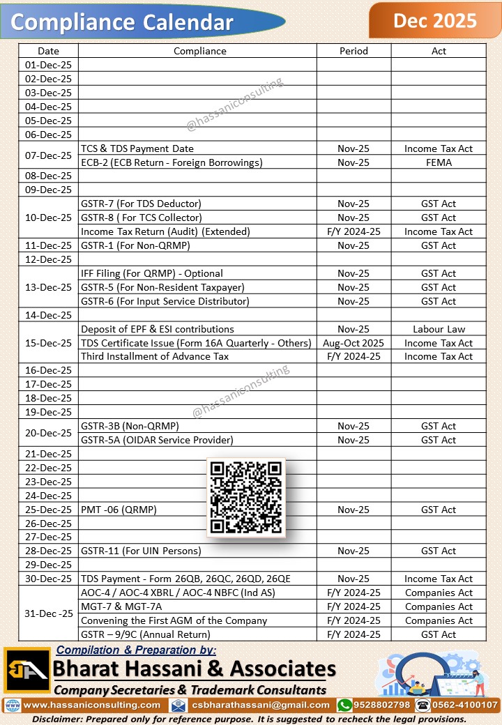 Monthly Compliance Calendar - December - 2025